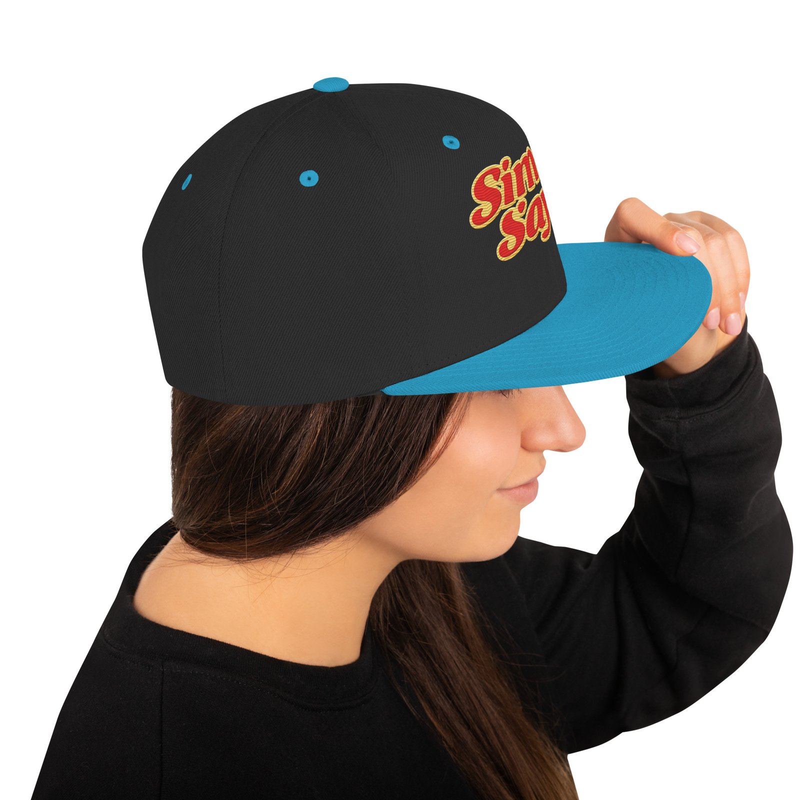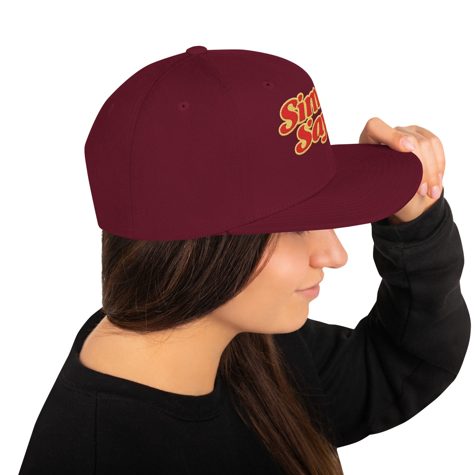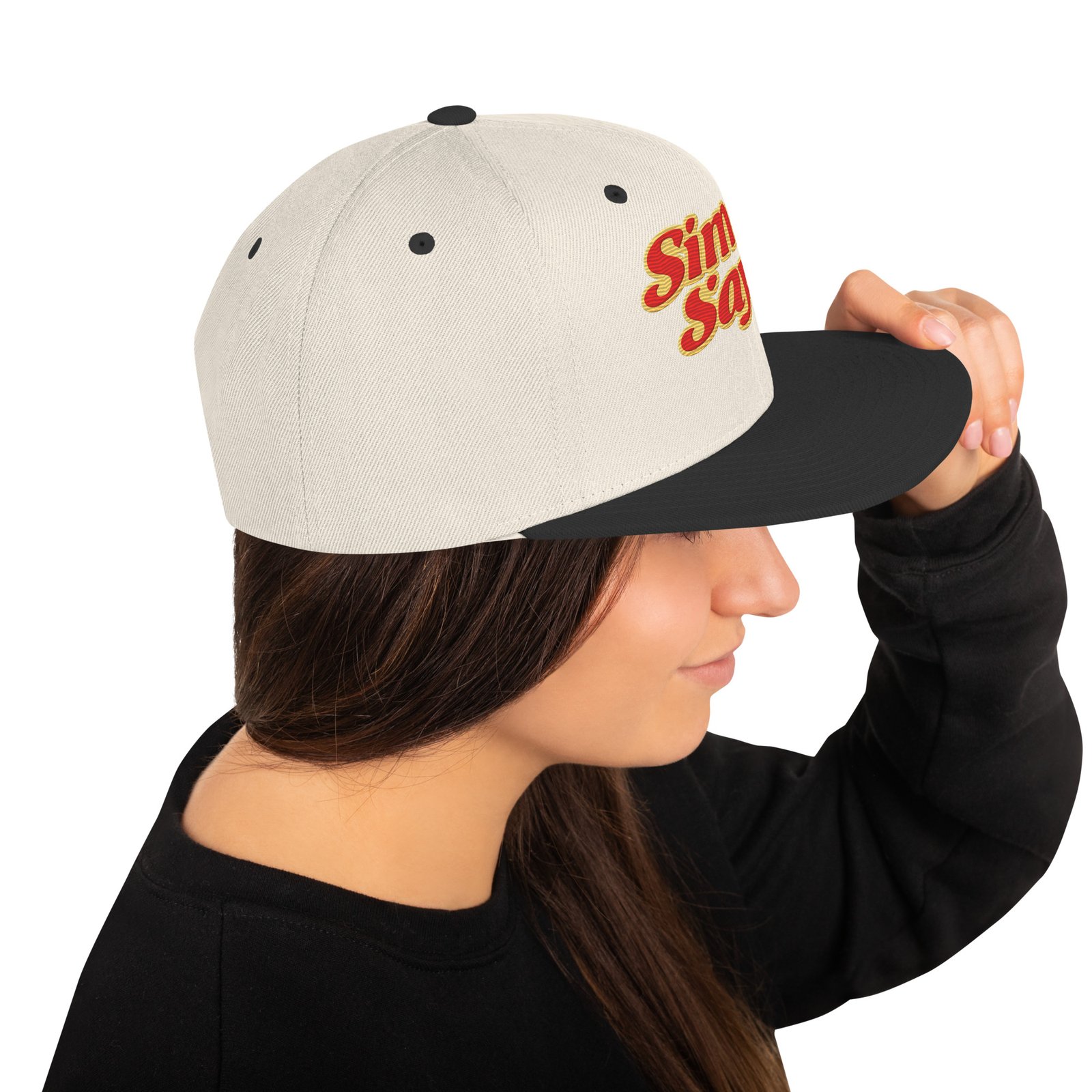 This hat is structured with a classic fit, flat brim, and full buckram. The adjustable snap closure makes it a comfortable, one-size-fits-most hat.
